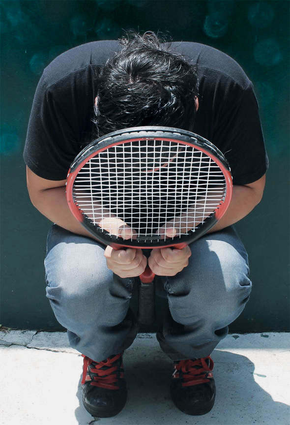 A torrent of impacts on a wall produced by balls, leaving a somber pattern. In some racket sports, it is usual, during adolescence, that after having lost a game, the first loser will be shot, using his racket as unique protection. A ritual that reflects violence at early ages.