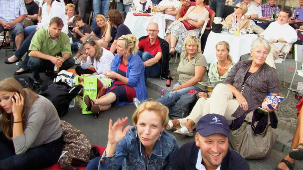 A large number of people are recorded in Berlin while they wait, and the camera’s presence provokes varied reactions. The audio is made up of an enveloping sonic mass that unites their voices and the soundscape.