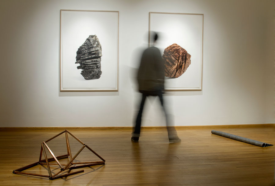 Through the use of self-imposed methods, Rodolfo questions sculpture and architecture: their rules, their composition and their design. He intervenes common objects (a brick transformed into urban landscapes) and canonic images (David as a canvas to all the possible permutations of a square) with as much endeavor as irreverence.